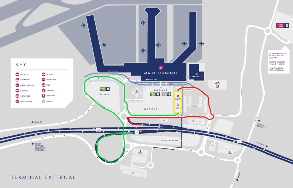 *** You can wait for Free up to 1 Hour at the Long Stay Car Park, located top right of the airport map below ***