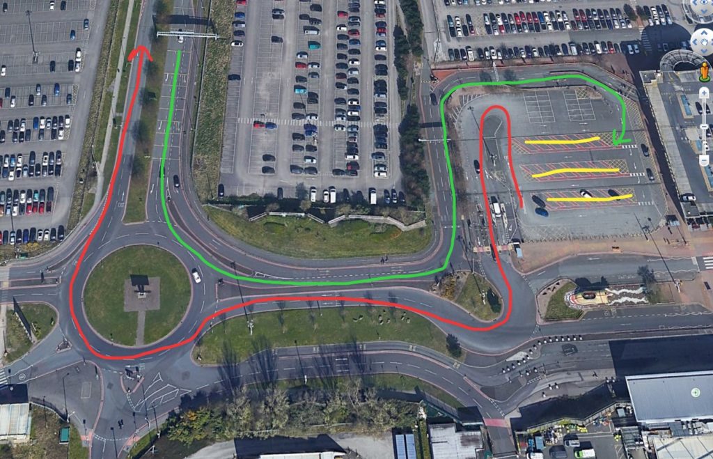 For pick ups wait off site, either at the end of Western Ave, or one of the places below. Like Manchester Airport, advise customers to message you once they are at the Express Drop off, then you can head round to pick them up (its 10minute max in this car park). The express drop off car park is located directly opposite the terminal just behind the yellow submarine.