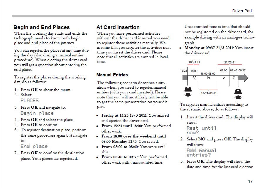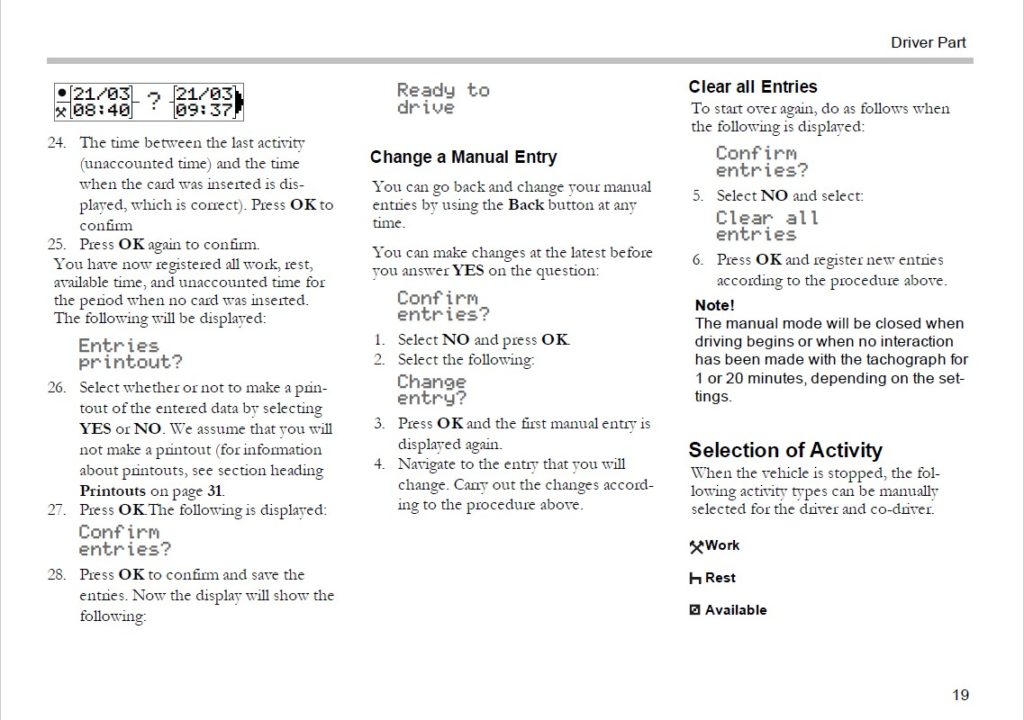 From 03/03/2023 when you enter your Drivers Card into the Tachograph you must select “Yes” when it says “1M Entry Addition”