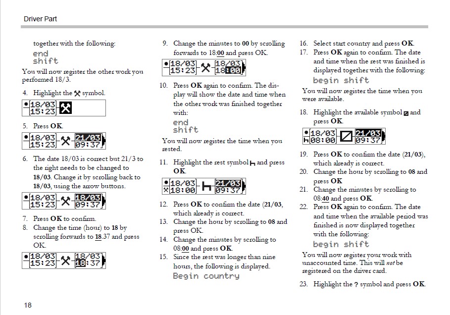 DVSA have updated their policy so all drivers now need to enter any other work carried out between driving via the Tachograph Unit in a bus. Below sets out how to enter these “other work” jobs on the Tachograph